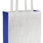 Bolsa reutilizable de tela no tejida (TNT) bicolor de 80g/m2, bolsa muy elegante ya que cuenta con color frontal fuelle y manillas con color de contraste, su logo no podría lucir mejor en esta bolsa.